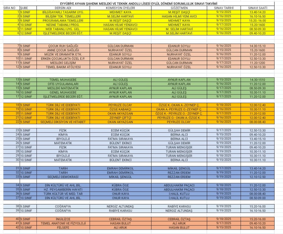 2025-2026 EĞİTİM ÖĞRETİM YILI EYLÜL DÖNEMİ SORUMLULUK SINAVI TAKVİMİ